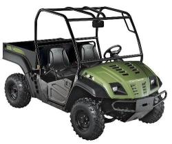With a 20 hp 624 cc Kohler Command V-twin engine, the 4×4 is the ideal model for a small farm, rough or muddy terrain, or pushing snow. It also has a seven gallon fuel tank, four-wheel drive with differential traction, and a steel bed. Various accessories can be added to turn it into a small truck, such as a snow blade, winch, dump bed, windshield, or doors. It is available in yellow, red, and green.